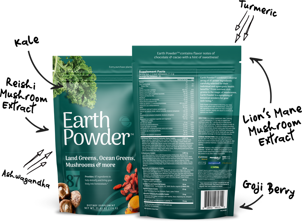 Earth Powder combines 87 health-promoting ingredients, including super greens, superfoods, functional mushrooms, vitamins, minerals, antioxidants, pre/probiotics, digestive enzymes and electrolytes into the world’s most complete Daily Foundational Nutrition supplement built for endurance athletes.